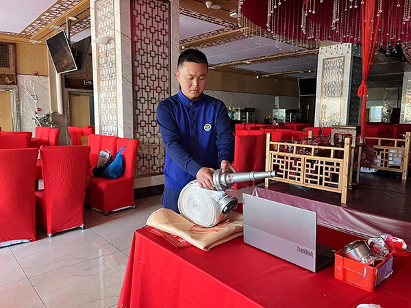 培训会上,大队宣传人员从餐饮场所的消防安全监管职责、火灾风险防范指南、安全管理重点等方面进行了阐述,同时,结合典型的火灾案例,重点就餐饮场所如何加强日常消防安全管理,燃气的使用注意事项、如何检查燃气是否漏气、厨房用火用电注意事项、如何预防火灾、处置初期火灾和组织人员疏散逃生进行了详细讲解,重重地敲响了预防火灾的警钟。整个授课过程案例丰富、图文并茂、深入浅出,对餐饮场所从业人员提高安全意识,进一步做细、做实日常安全管理工作提供了很大帮助。理论培训结束后,宣传人员组织参训人员进行了灭火演练,现场模拟了火灾初期疏散演练流程,按照“灭火器灭真火”、消火栓出真水”的标准,让每名参训人员都亲身体验火灾处置的全过程,切实培养一批“见火不慌,抬手就灭”的灭火达人。