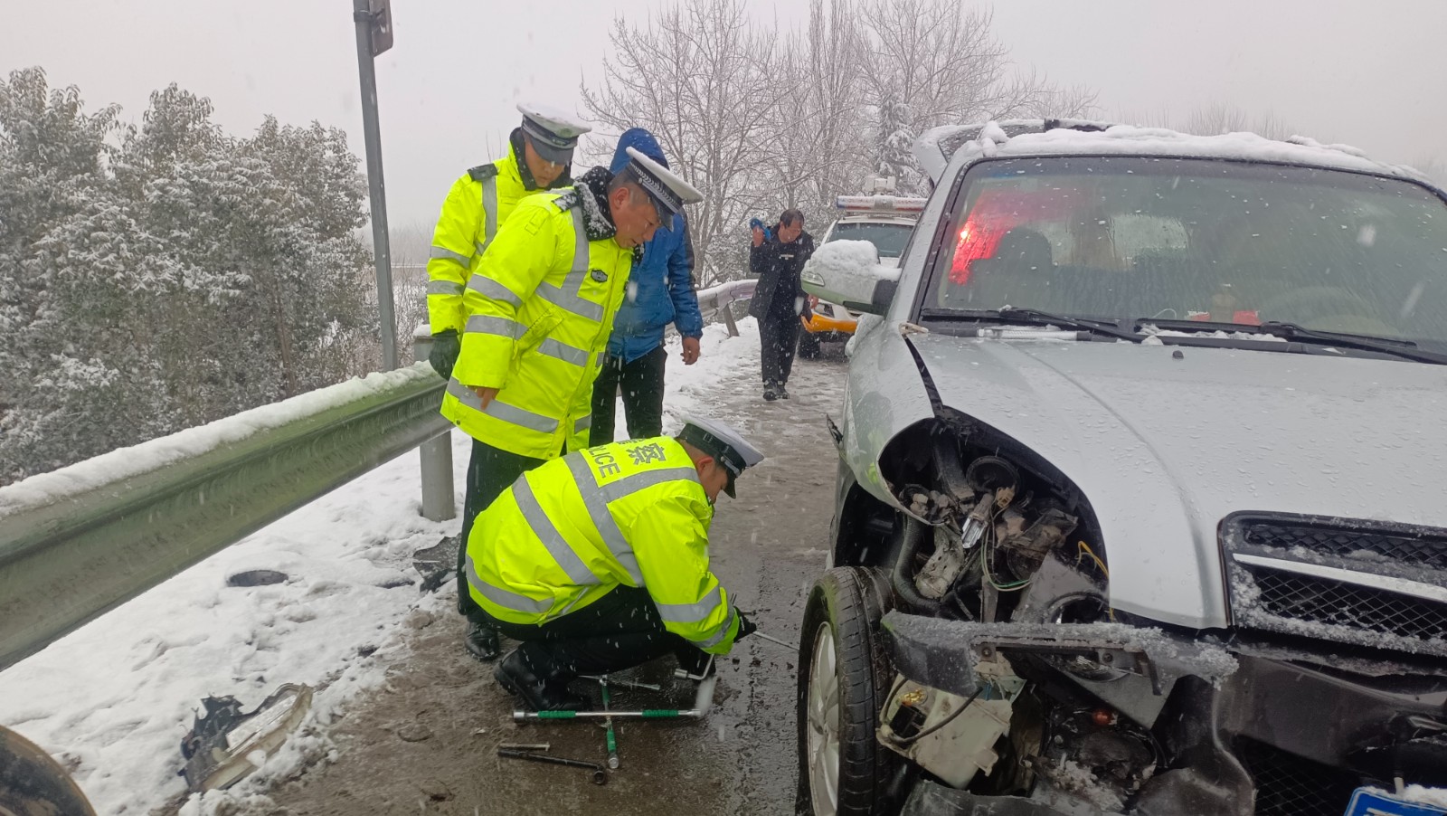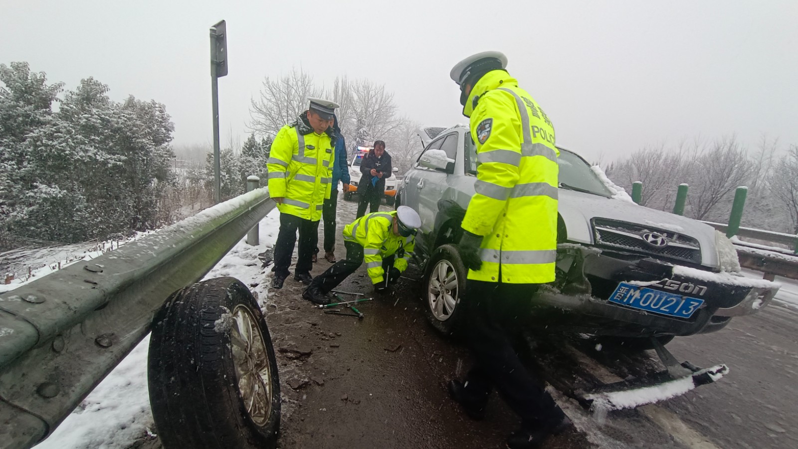 1月16日下午4时,山西高速交警四支队五大队民警巡逻至运城北收费站匝道时,发现发生一起因下雪路滑,驾驶员操作不当导致车辆侧滑撞上护栏的事故,民警通过帮助驾驶员换取车辆轮胎,确保驾驶员能够安全下高速,得到了驾驶员的表扬。