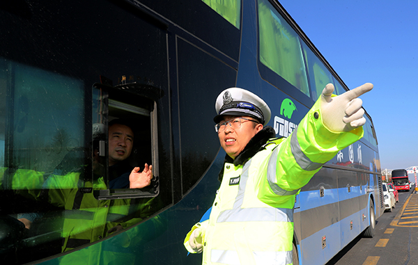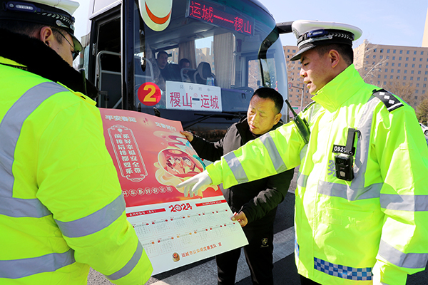 为全力保障广大群众平安返程,2月17日,运城市公安局盐湖分局交警大队按照上级公安机关党委的安排部署,深入分析研判、谋划应对措施,全体民辅警坚守工作岗位,排查安全隐患、开展警示教育,他们以疏堵保畅保安全为目标,把市区、高速口、高铁站等人流车流比较集中、易发生拥堵的路口和路段作为重点,严密安排警力,按照“远端分流、近端管控”的原则不间断加强疏导和规范停车,确保群众春节返程安全有序。图为当日大队园区中队、八中队民辅警在辖区执法检查站、运城北高速口和高铁站疏堵保畅、拍隐患、警示教育和治理违法停放时场景,确保春节返程交通秩序良好。