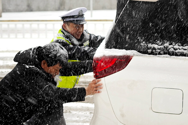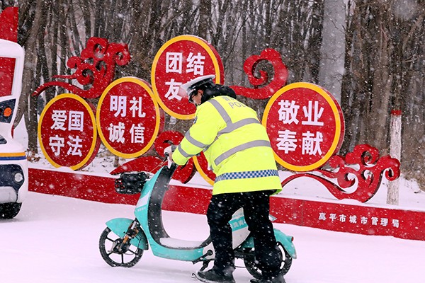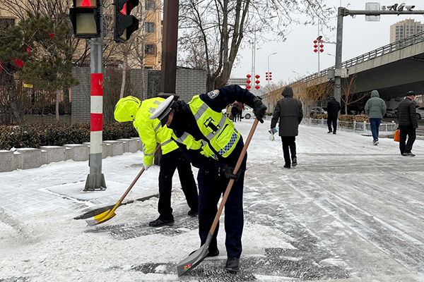 2月20日,我省出现大范围降雪天气,全省公安交管部门迅速启动恶劣天气应急预案,广大公安交警辅警闻雪而动,全员上路对重点路段及区域采取定点执勤和巡逻管控相结合方式,及时掌握路面情况并快速处置突发状况。同时,各地公安交管部门还充分利用微博、微信、抖音等媒体平台,及时发布路况信息和冰雪道路出行提示信息。