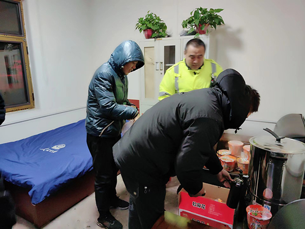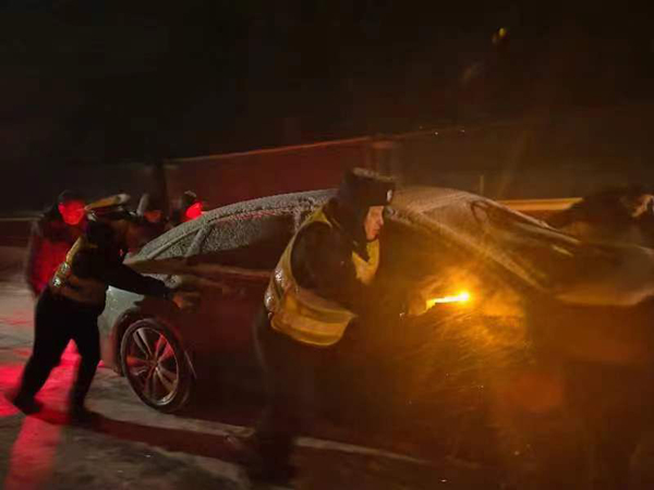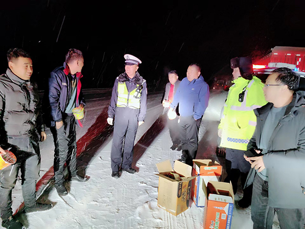 21日大雪纷飞,给车流量大的340省道更是雪上加霜,大量车辆被困。杜村中队积极联合养护中心、乡党委政府组织人员破冰除雪,为被困司乘人员提供方便面、热水、火腿等救援物资。直到下午辖区被困车辆全部安全驶离辖区路段。