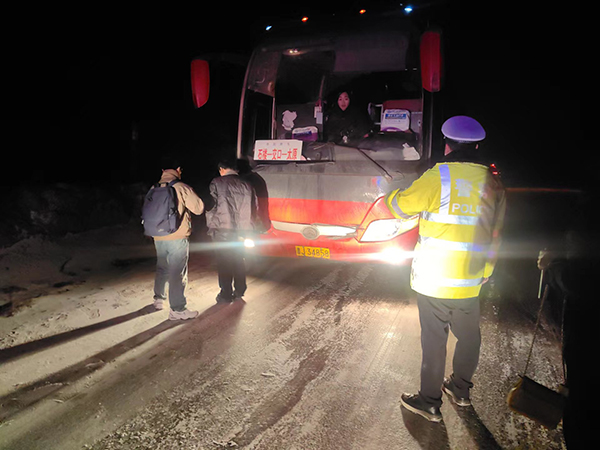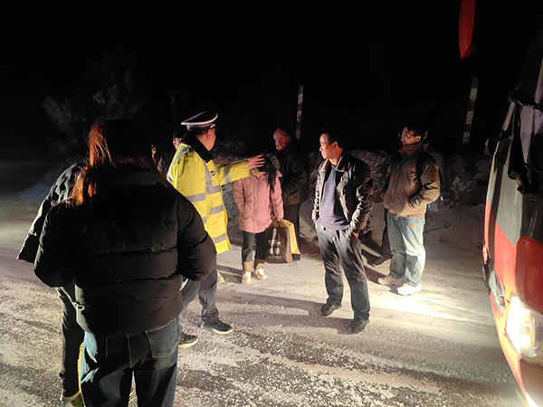 接到警情后,石楼县公安局交警大队安排罗村中队立即出警援助。罗村中队交警抵达现场,一方面对现场进行安全防护,一方面将乘客劝至护栏外并做好安抚工作,同时又联系罗村派出所前来支援。罗村交警中队与罗村派出所民警共同用警车分批次将12名乘客安全转移,使乘客在漫漫寒夜里顺利到达终点站。客车驾驶员及车上乘客对罗村交警中队与罗村派出所的民警感激不尽,赞叹不已。