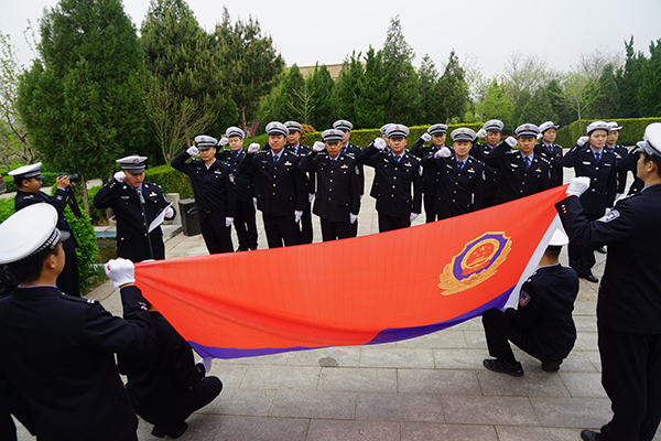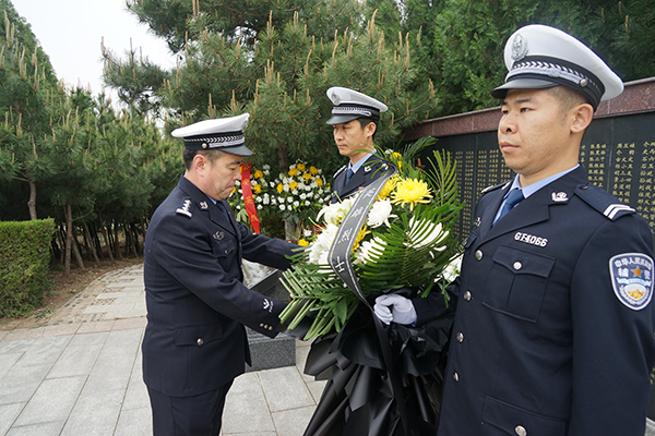 在运城公安烈士陵园里,高速四支队机关党支部及五大队党支部向公安英烈敬献花篮,全体民辅警脱帽默哀致敬,向中国人民警察警旗宣誓,并参观公安英烈纪念场所,深入了解先烈们为党和国家人民作出的巨大牺牲和贡献。