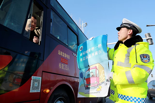 2月3日,运城市公安局盐湖分局交警大队全体民辅警始终坚守一线,发扬不怕疲劳、昼夜奋战的优良作风,疏拥堵、压事故、促畅通,全力为群众安全出行保驾护航。假日后期,针对返程群众出行相对集中的特点,大队及时调整勤务安排,将警力部署到关键路段重要节点,进一步强化路面管控,加强指挥疏导,将疏堵保畅、违法查纠、巡逻管控、服务群众紧密结合,及时化解道路交通“乱点”“堵点”,确保不发生大面积、长时间交通拥堵,切实维护辖区道路交通安全形势持续平稳。图为当日民警坚守岗位疏堵保畅,服务群众的场景。