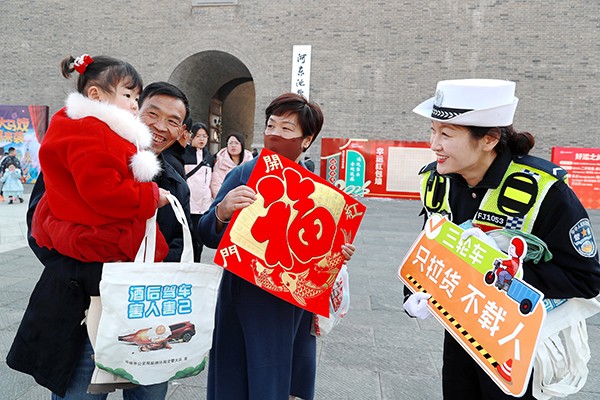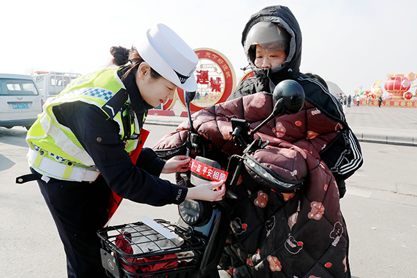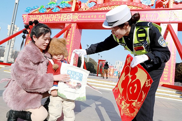 1月29日,运城市公安局盐湖分局交警大队按照上级公安机关党委安排部署,大队指挥中心精准指挥调度,确保路面民警及时处警,结合辖区道路交通实际,积极应对走亲访友、外出购物及游玩的交通出行高峰,在各主要景点、广场、路口安排警力指挥疏导车辆有序通行,重点加强对车流、人流相对集中、易发生交通拥堵路口路段的定点值守和巡逻管控,切实保障道路通行秩序,提高过往车辆通行效率。同时,利用警用喇叭传出“平安春运”最强音,宣传民警走进景区和广场开展以“平安春运交警同行”为主题的宣传活动,利用宣传挂图、小展板、安全即时贴、赠送安全手提袋和围裙的形式,提醒群众戴好头盔、三轮车不违法载人、不酒驾、不超速,做到平安出行。在严管控交通秩序同时,还开展便民爱民活动,积极帮助群众排忧解难,树立交警良好形象,用实际行动温情守护平安祥和团圆年。