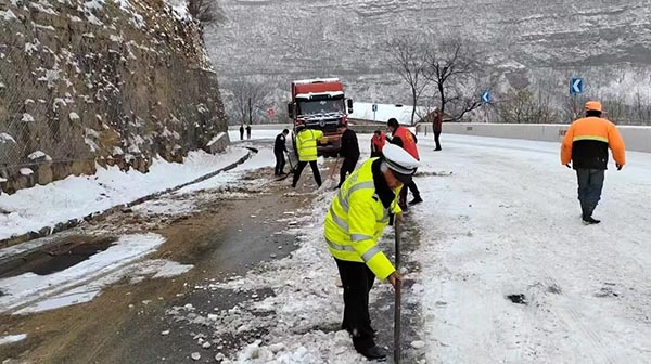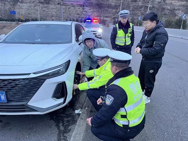 2月19日晚,长治市平顺境内降温降雪,雨雪后县内花壶线、张不线、325省道西岭、341国道岭底坡路段急弯陡坡路面结冰湿滑,给人们外出、车辆通行等带来极大不便。平顺县公安局交警大队针对雪后道路交通工作实际,组织警力铲雪撒土,消除路面事故隐患,最大限度保畅保通,提升路面通行能力,维护路面平安交通秩序。该大队出动警力40余人,出动警车7辆,消除各类路面隐患6处。