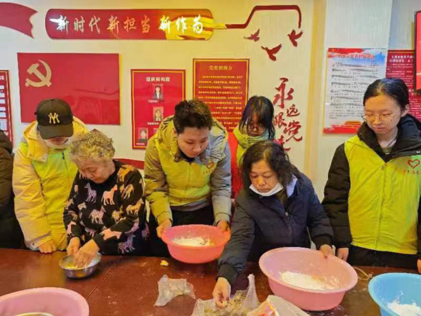 滚元宵取团圆之意,象征全家人团圆幸福,年年欢聚。居民朋友们和志愿者们“开足马力”,挽起袖子齐上阵,纷纷加入到“滚”元宵的队伍中,饱满的馅料,圆滚滚的外形,让人食欲满满。大家开心地围在桌前,将元宵圆馅料沾水后放进糯米粉中滚了起来。这样重复七八次后,一个个圆滚滚的元宵圆摆满了桌面。通过学做元宵圆,既感受了元宵佳节的喜庆气氛,又传承弘扬了中华优秀传统文化。