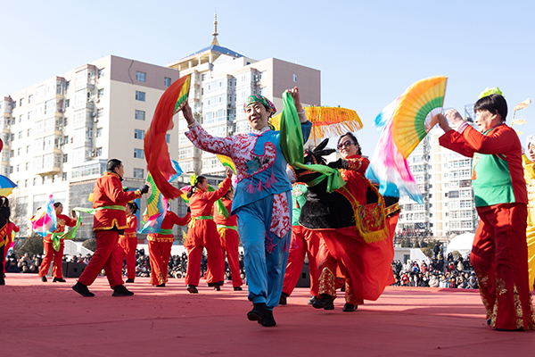 活动中,悠扬的歌声,活力四射的精彩节目轮番上演。晋剧戏歌《盛世中华》《祖国你好》将传统唱腔与现代音乐巧妙交融,用悠扬旋律唱响对祖国的深情礼赞,武术表演刚劲有力、虎虎生风,展现了中华武术的独特魅力,晋剧《打金枝》等歌舞、独唱、小品、唢呐演奏,引的现场观众掌声阵阵,喝彩声此起彼伏,这不仅让观众捧腹大笑的同时,感受到了传统民俗文化的别样魅力,也为广大群众营造了欢乐、祥和的春节氛围。