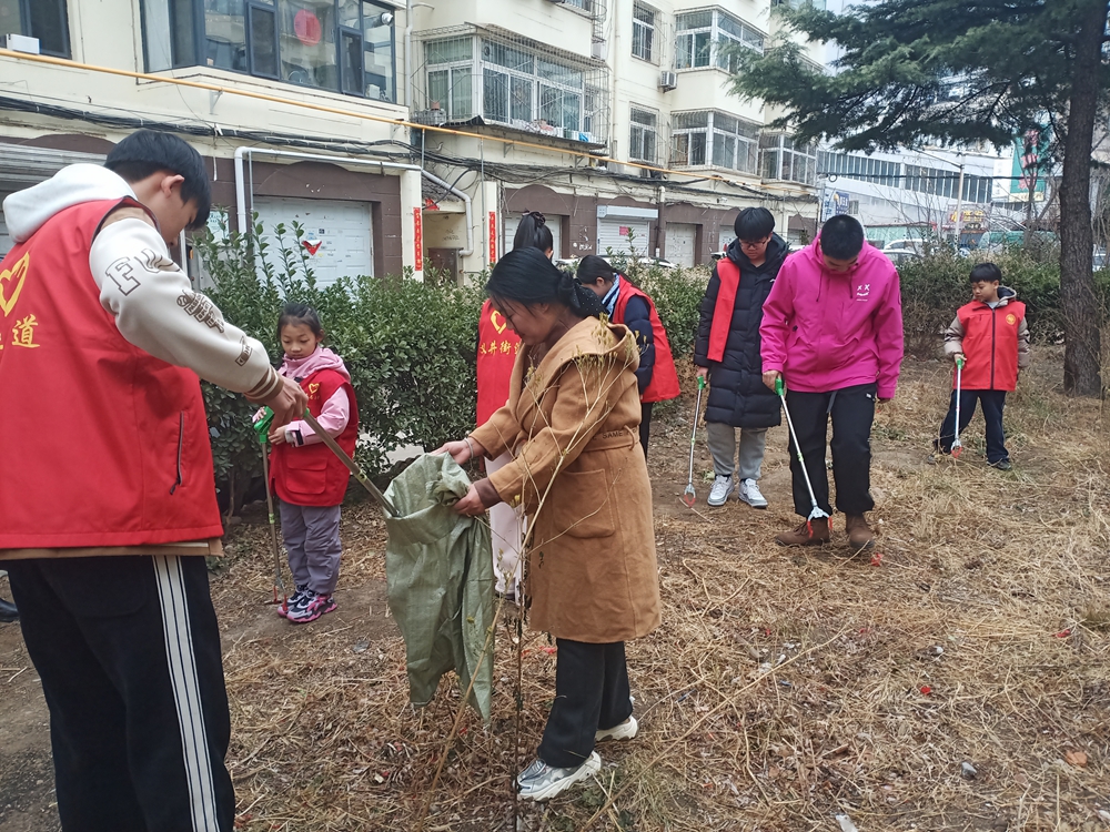 活动中,同学们分组协作、热情投入,对辖区绿化带开展全面清洁,认真捡拾白色垃圾、清理枯枝杂物等,用实际行动美化社区环境。整个过程秩序井然、配合默契,同学们以饱满的热情和认真的态度,充分展现了新时代青少年乐于奉献和爱护家园的良好风貌。