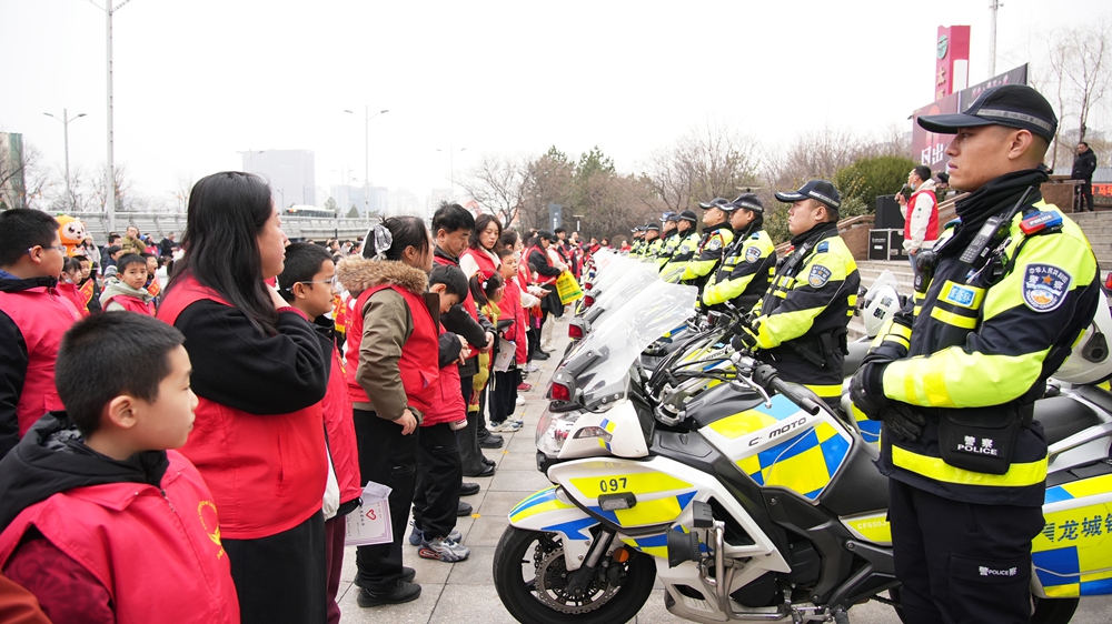活动现场,来自太原市公安局交通管理支队十二大队的铁骑队员与青少年面对面互动,系统讲解交通安全知识、演示交通指挥手势,带孩子们近距离参观警用摩托车装备,让青少年沉浸式体验交警日常工作,在实践中提升交通安全素养。