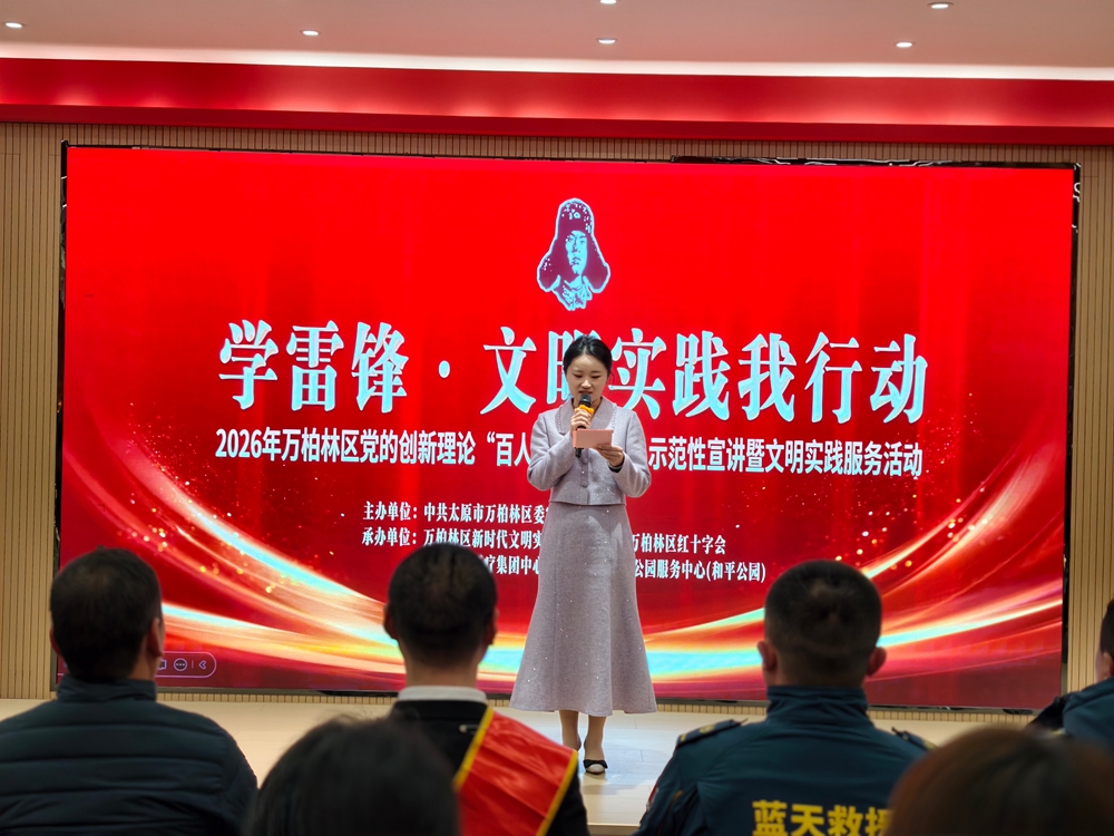 文明山西网讯 3月5日,2026年太原市万柏林区党的创新理论“百人千场进万站”示范性宣讲暨文明实践服务活动在区新时代文明实践中心正式启动。活动以“学雷锋·文明实践我行动”为主题,创新采用理论宣讲+文明市集+健康义诊+观影学习的亲民形式,把转作风、优服务、促文明贯穿全过程,引导文明实践队伍挑大梁、当引领、作示范,推动党的创新理论走进基层、深入人心,把便民利民服务送到群众家门口,让新时代雷锋精神焕发新光彩。