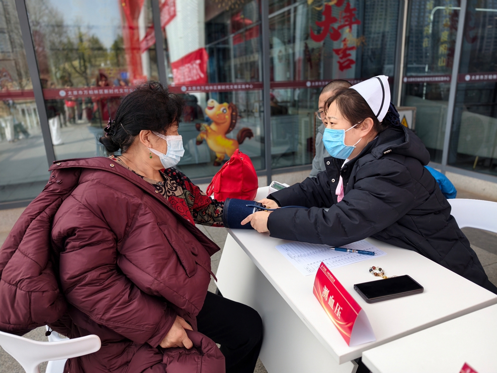 文明市集聚合力,便民服务暖民心。活动现场,区红十字会、太原市扶弱帮困协会等多家单位设立服务点位,开展公益宣传、AI科普、爱心帮扶等多样化服务;区医疗集团中心医院组建专业医护团队,设置7组义诊点位,为居民免费量血压、测血糖、提供健康咨询,用专业守护群众健康,赢得现场群众一致好评。