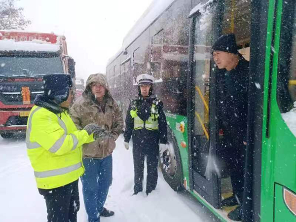 21日大雪纷飞,给车流量大的340省道更是雪上加霜,大量车辆被困。杜村中队积极联合养护中心、乡党委政府组织人员破冰除雪,为被困司乘人员提供方便面、热水、火腿等救援物资。直到下午辖区被困车辆全部安全驶离辖区路段。