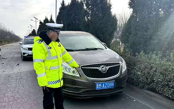 1月14日早,正值春运首日,解州中队民警按照大队的安排部署在辖区开展交通违法查处行动,当他们巡逻到解州新开路时,发现道路左侧停放一辆商务车,属于违法停放,民警随即上前查看情况,发现车内没有驾驶员且车门紧锁。随后,民警立即通过警务通平台,利用车牌号码与车主取得联系,车主称自己的爱车于1月8日夜间在市区某广场内丢失,已经在北城派出所报了案。目前车辆已移交北城派出所作进一步处理,该案件还在侦办中。图为当日民警现场发现被盗车辆进行处置。
