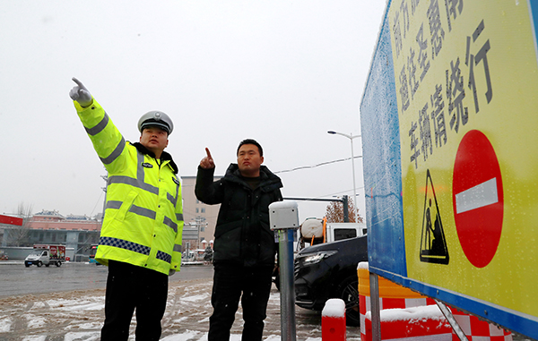 文明山西网讯 1月25日,临近春节,山西运城市盐湖区迎来强雨雪天气,为积极应对降雪天气,运城市盐湖区公安局交警大队以雪为令,迅速启动恶劣天气交通管理应急处置预案、细化勤务部署、强化应急保障,维修交通设施,全力以赴,保障恶劣天气下道路交通安全。全员上路坚守在执勤一线,坚决做好雨雪冰冻天气道路疏堵保畅工作,同时开展爱民便民服务,树立交警良好形象,全力以赴确保辖区群众出行平安。图为当日大队民警在市区主要路口冒雪值守保畅通,同时维修交通设施和开展爱民服务。
