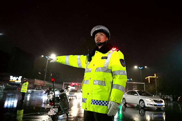 文明山西网讯 1月24日,运城市盐湖区迎来2025年首场大范围雨夹雪,气温骤降,道路湿滑。为积极应对此次降雪天气对辖区交通安全带来的不利影响,保障人民群众春运出行安全,运城市盐湖区公安局交警大队民警以雨雪为令,闻令而动,全力做好雨雪冰冻天气保安全保畅通工作。雨雪夜,民警不畏严寒,坚守岗位,加强对辖区商超、农贸市场、主要交通路口重点巡逻值守力度,通过喇叭喊话、开启警灯等措施,提醒驾驶员减速慢行,与前车保持安全距离,提高驾驶员恶劣天气下的应急能力,有效预防和减少交通事故的发生,为人民群众顺利返乡、欢度佳节创造良好的道路交通环境。图为当晚大队六中队和大渠中队民警在市区拖厂岗和圣惠北路冒着雨夹雪天气值守保障路面畅通有序。