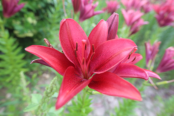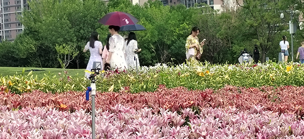 百合花种类繁多,形态各异。纯净高雅的白色、热情妩媚的红色、明丽澄澈的橙黄、浪漫俏皮的粉红、雍容华贵的紫色,形似漏斗,又如喇叭,或向上开花、张扬外翻、极端华丽,或含露低垂、矜持含蓄、超凡脱俗。花间蜂蝶飞舞,暗香浮动,游人三五成群,在花丛合影拍照,游玩嬉戏,好不惬意。市民王女士对这里赞赏有加:“看到这五颜六色的百合花,让人的心情都像盛开的花一样,特别美!每季有每季的花开,每次都带来不一样的惊喜和精彩。”