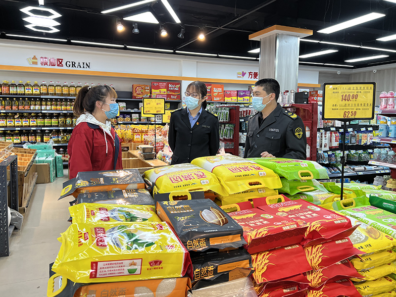 石楼县市场监督管理局执法人员对超市进行监督检查。石楼县融媒体中心供图